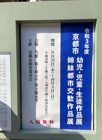 左京区岡崎公園内にある京都市美術館別館で,「令和3年度姉妹都市交歓作品展」が行われています。5組の書写と絵が出品されており,見学に行ってきました。ちなみに,今年はウクライナの首都キエフ市と京都市が姉妹都市になって50周年だそうです。また,クロアチアの首都ザグレブとは,京都市が姉妹都市になって40周年だそうです。