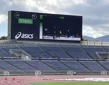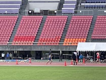 雨が上がりました。第六走者、最後はストライドも大きく、ゴールを走り抜けました!無事、襷が最後まで繋がりました!