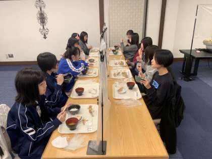 この後のサッカー大会に備え、みんなパワーチャージしています!午後からは、梓川でのラフティングが続きます。今日も一日、良い旅を!