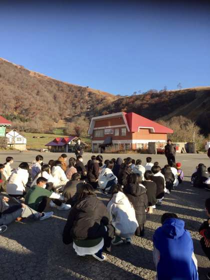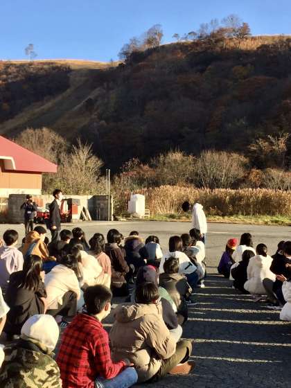 退所式の様子です。これから三重県に向けて出発します。今日も快晴、最高です。ホテルの皆様、3日間、本当にありがとうございました!