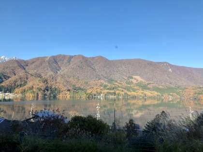 湖面に映る山々がきれいです。