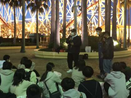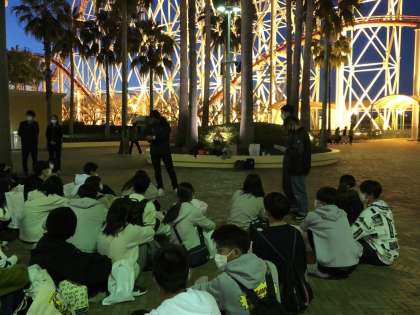 あっというまに夕暮れです。ナガシマスパーランドを後にするにあたり、この修学旅行の解団式が行われました。3日間お世話になった添乗員さん、カメラマンさん、本当にありがとうございました。