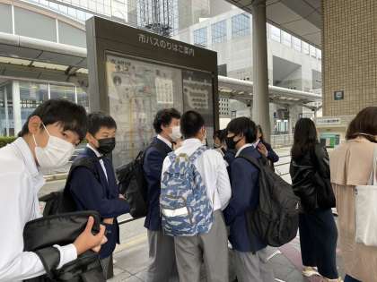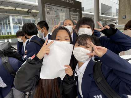京都駅に到着しました。ここからは、各高校へ出発です。自分たちで道を聞いたり地図を見たりして頑張ってます。