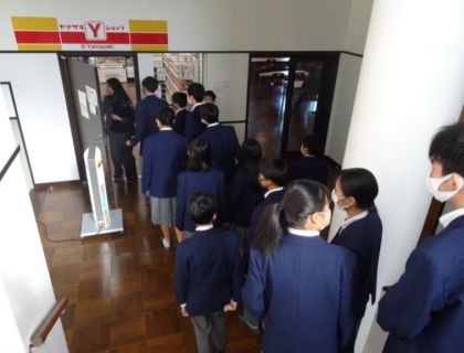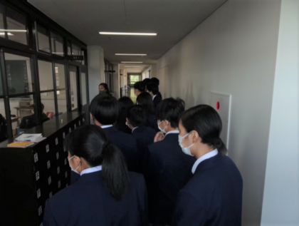 続いて,今度は鴨沂高校です。こちらも昔からの校舎をリノベーションして,本当にきれいな建物に変わりました。授業を廊下から見学させていただいたり,学校にあるコンビニに入らせていただいたり…