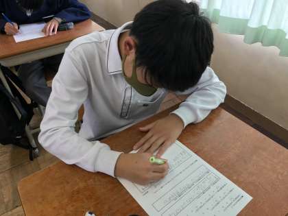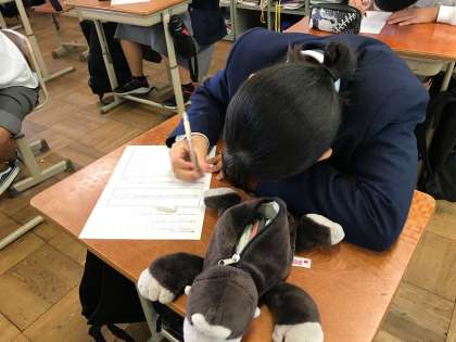 校外学習で見学させていただいた高校の先生にお礼のお手紙を書いています。