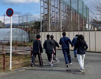 続いて,男子バスケットボール部。新年はランニングでスタートです。顧問の先生も一緒に並んで列を作って走る,その姿はまさに「青春」です!
