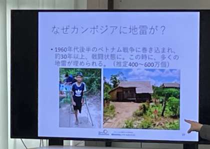 2年生では,平和学習の一環として,講師をお招きして「地雷問題から考える平和とは?」について考えました。カンボジアの地雷原に住む人々の生活,なぜそのような状況になったのか,その影響は,これからどうなっていくのかを,講師の方から教えていただきました。昨日,奇しくもウクライナで戦争が始まりました。なぜ戦争が行われるのか…。平和が一番大切なはずなのに…。今自分に何ができるのか,遠い世界の出来事ではなく,自分事として考えられるようになった時,本当に平和について考えられる一歩が始まるのだと確信しています。