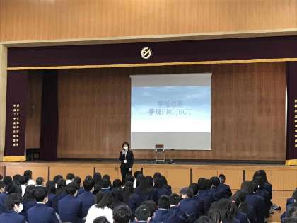 全校集会がありました。内容は学校改革の夢現プロジェクトの話で、なぜ学ぶのかについて、近くの人と議論をしました。みんなで魅力的な学校にしていきましょう。