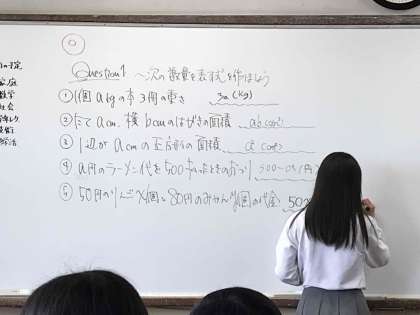 2年生の授業が本格的に始まりました。本日の数学は単項式と多項式の違いを知り、項や係数について学びました。