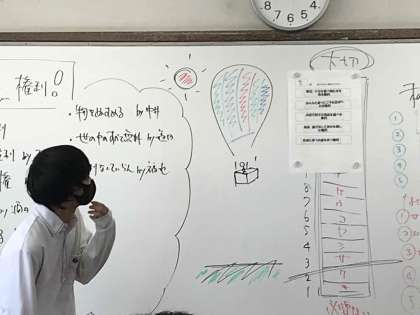 その権利を失うとしたらどの順番で捨てるか、また、どの権利を失くすと生きていけないか。たくさん議論ができてよかったです。今年も道徳の時間を有意義なものにしていきましょう。