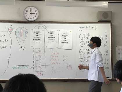 2年生での初道徳は、自分の持つ権利の優先順位について話し合い、意見交換をしました。あまり意識はしてないものの皆さんはたくさんの権利を持っています。食べる権利、認めてもらう権利、お金を自由に使う権利、本を読む権利など…