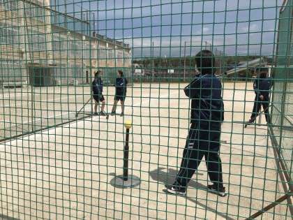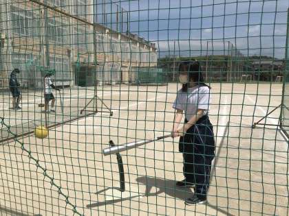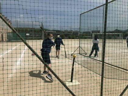 体育はソフトボールです。ネットに向かって、バッティングの練習を行っています。快晴の中、体を動かすことができました。水分補給をお忘れなく!