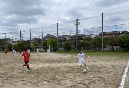 今週は伏見中学校との練習試合です。強い相手に立ち上がり点を取られますが、2-2に引き分けました。次のゲームでも得点を重ね、2-1で勝利することができました。今日は雰囲気の作り方や、アップでの気持ちの作り方を学ぶいい機会でしたね。お疲れ様でした。