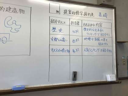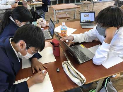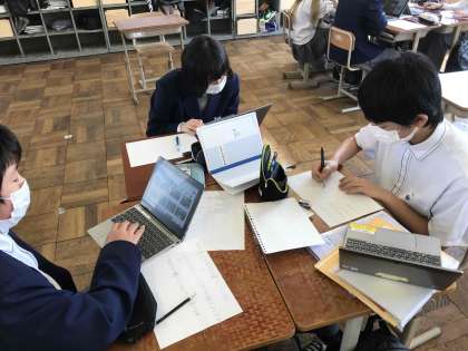 国語では、修学旅行の行き先を文書や資料の比較を用いて提案していました。もくもくとタブレットやノートと向き合っていましたね。