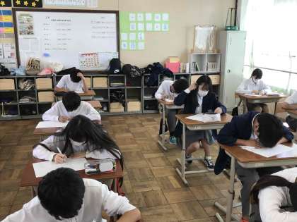 連立方程式の小テストがありました。習うより慣れろ!!とは、まさにこのことです。定着目指して、精一杯頑張っていこうね!!がんばれ。