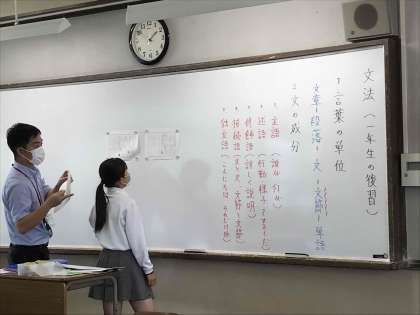 国語は文法の学習です。定期テストはもう2週間後に迫っていますよ。