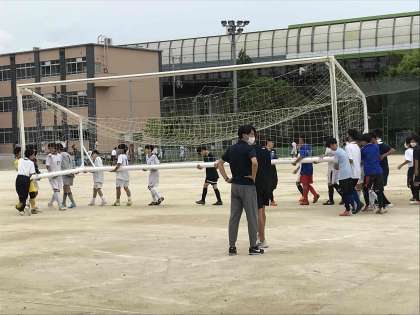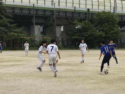 昨日は深草中学校と、夏季大会を見据えた練習試合でした。30分を2本、本番と同様の条件で真剣勝負し、3-0と勝利することができました。前半は、課題として練習しているマークや、パスコースに問題がありましたが、後半は克服して追加点を取ることができました。試合前には相手チームの準備を手伝うなど、とてもいい行動がありましたね。