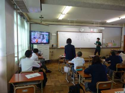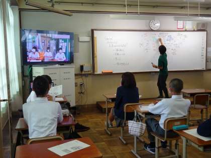 宕陰小中学校と交流道徳(リモート)