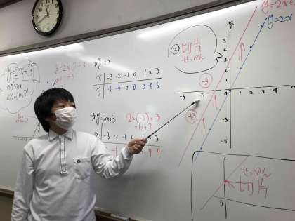 また、Y軸との接点を、切片と呼ぶのですね。覚えておきましょう。※今日はいつもと違う角度での写真です。かっこいい!