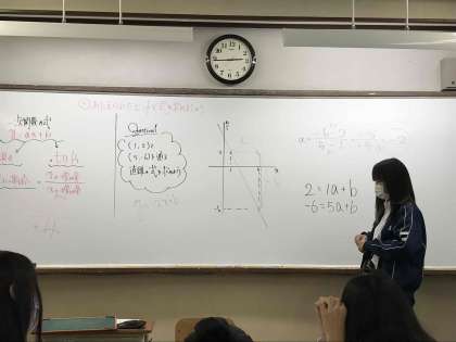 数学では、条件に合わせて式を求める授業に挑戦しています。明日からは入試問題に挑戦する予定です。