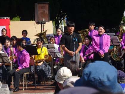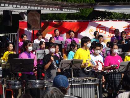 槙島中学校の吹奏楽部員と共に合同演奏を行いました。