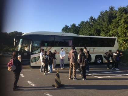 ペンションごとに分かれてバスに乗車します。
