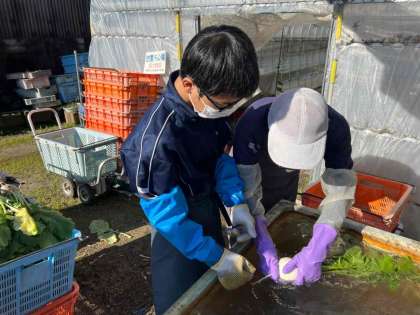 チャレンジ体験2日目です。今日は農家のお仕事に挑戦している写真と、事業所がお休みの人が学習に取り組む様子から紹介します。