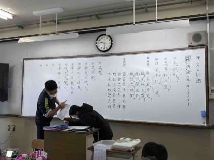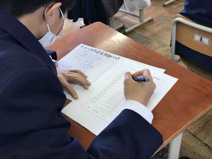 国語は漢文の勉強に取り組んでいます。積極的に質問に行っていますね。理科は、オームの法則について学習し、小テストを実施していました。3年生につながる大切な時間を有意義なものにしてください。英語は、比較級・最上級について学習しています。変形する単語をしっかり暗記しましょう。