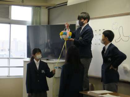 生徒会の先輩方からくす玉の祝福を受け、