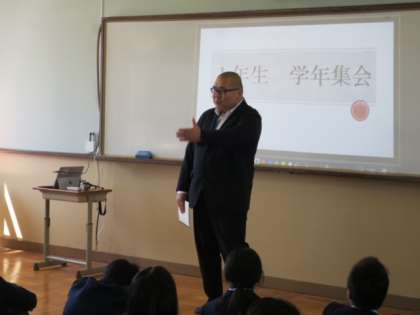 学年集会では,各先生方の自己紹介の後に学年主任の伊藤先生からお話がありました。