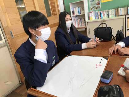 1年間掲げる大事な目標、みんなで決めている様子です。