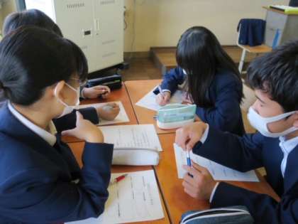 1年生は「凡事徹底」すべき「ルール」について話し合い意見を発表していました。
