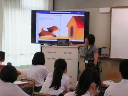 1年生は週に1度,朝読書の時間に読み聞かせを行っています。2組には校長先生が来てくださいました。読み聞かせが始まると,とても集中して聞いていました。物語がおわると,生徒たちは自然と自分たちで拍手をしています。今日は「にゃんのてがみ わんのてがみ」という絵本でした。絵本はとても考えさせられる深い内容の本が多いです。ぜひ,絵本も積極的に手に取ってみてください。