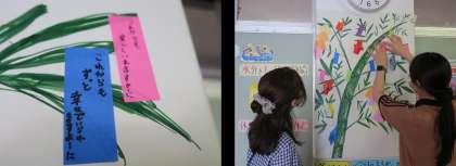 保健室の前に,七夕の掲示物が飾られていました。養護の先生が作ってくださったったものです。七夕は,古くから行われている日本の行事でもあります。