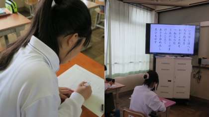 国語の授業では,先生から返却された詩を「推敲」しました。提出BOXに再提出した後は,「硬筆」に取り組みました。どのクラスもとても集中して取り組んでいました。