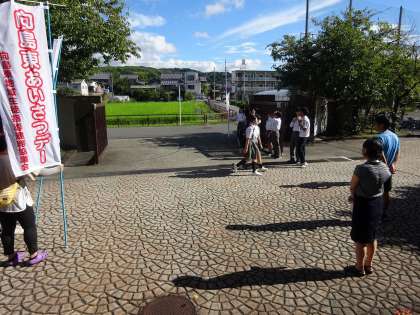 本日PTA役員の方々と『朝のあいさつDay』を行いました。登校時に校門や通学路で生徒たちに声をかけていただきました。昨日から2学期が始まり、中にはまだ少し眠そうな目をしている生徒もいましたが、みんな元気にあいさつをしてくれていました。まだまだ暑い日が続きますが、元気な一日を過ごしてください。PTA役員の皆様もありがとうございました。