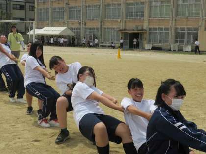 グラウンドでは青組と黄色組が試合形式で活動していました。これから向島東中が一番盛り上がる季節です!みんなで頑張りましょう!!