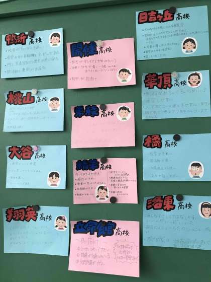 高校見学のシェア企画が、短期間でボリュームアップしています。みんなの力で、掲示物が充実してきました。しっかり情報を共有してくださいね。