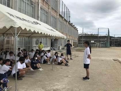 体育祭に向けての色別活動では、黄色組と赤組がグラウンド、そして青組が体育館での活動でした。黄色と赤色はお互いの技術を上げるために練習試合を実施しました。体育の部まであと2週間。楽しい時間になればいいですね。