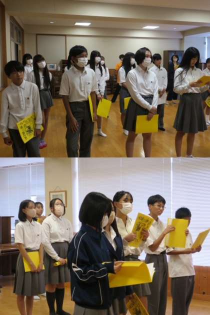 縦割り色別の全校体育や,合唱TIMEでそれぞれ生徒たちが活躍しています。