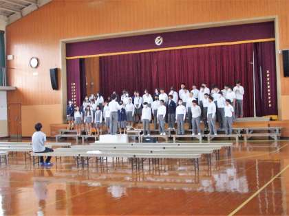 3年生のリハーサルでの出来事です。ソロパートの入りがうまくいかず、もう一度途中から歌い直す場面がありました。3年生のみんなは笑顔で少し前のフレーズからしっかり歌い直しソロパートにつながりました。その雰囲気はとても温かく最後の合唱をみんなで作り上げたいという気持ちが伝わってきました。