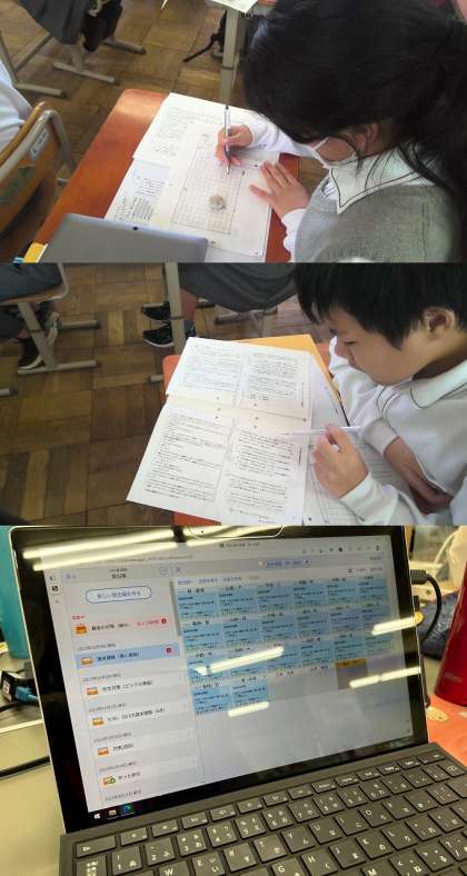 「タブレット持って帰っていいですか?」「プリントはいつ提出ですか?やってきたで!」と前向きに学習に取り組んでいる様子が見られました。