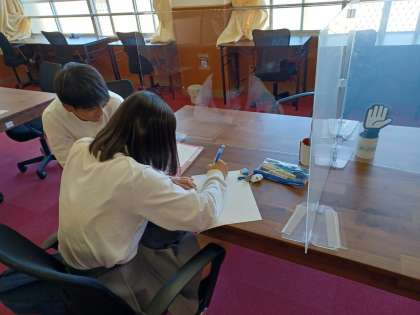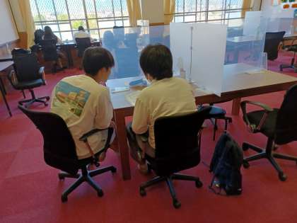 放課後『学びの聖地』(自学自習室)では多くの生徒たちが学びに向き合っています。学生ボランティアの支援もありやる気もUP!