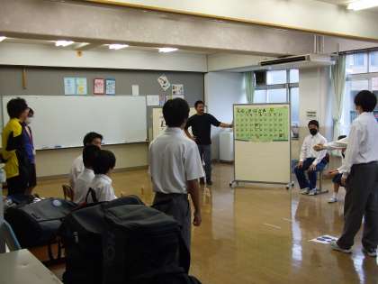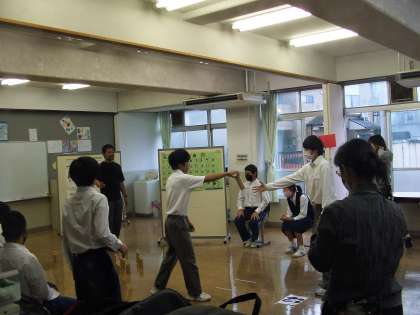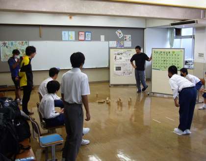 本日午後から近隣の中学校を招き交流学習を行いました。自己紹介の後、教室で『モルック』というゲームを行いました。普段お互い少人数学級ですが、大人数での活動にもすぐに慣れ仲間を応援しながら、またどの数字を狙えばいいかなどのアドバイスも行いながら楽しむことができました。