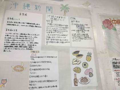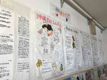 3年生の修学旅行がいよいよ1週間後となりました。1年生の頃から沖縄を題材に平和学習をしてきました。修学旅行で訪れませんが、いろいろなことを感じ、学んできました。舞台と合わせて、集大成に取り組んできた展示の活動を紹介します。