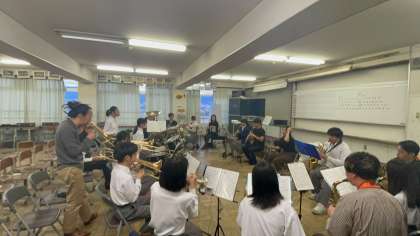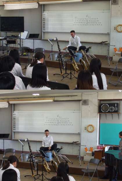 放課後には吹奏楽部にも指導をしてくださいました。吹奏楽部の生徒は目を輝かせながらちょっとしたことでも質問をして、技術を吸収する姿を見せてくれていました。