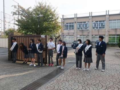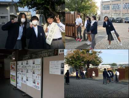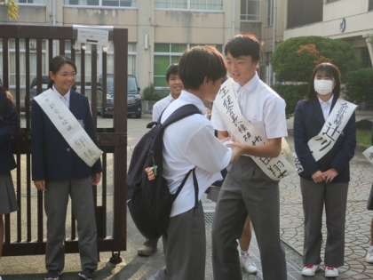 10月27日(金)には、生徒会本部役員選挙が行われます。選挙に向けて、朝のあいさつ運動が始まりました。みんな元気よく挨拶し、投票をアピールしていました。