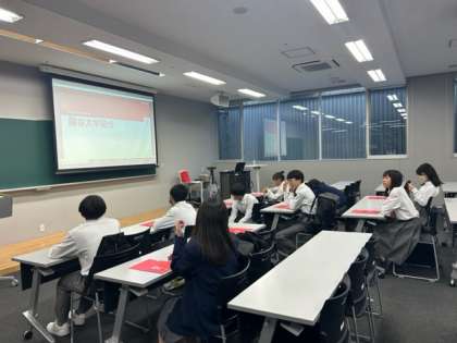 大学生が静かに真剣に落ち着いて授業を受けている姿に感動していました。講義室に入り、これからお話を聞きます。