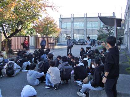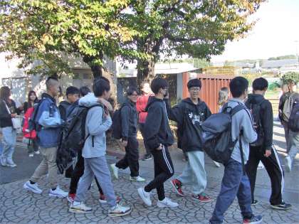 本日2年生は滋賀県比良の琵琶湖畔へ校外学習へと向かいました。好天に恵まれ、さわやかな秋空の下、さわやかな笑顔で出発しました。出発式では代表の生徒から今回の校外学習の目的とみんなで協力することの大切さを話してくれました。