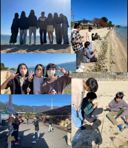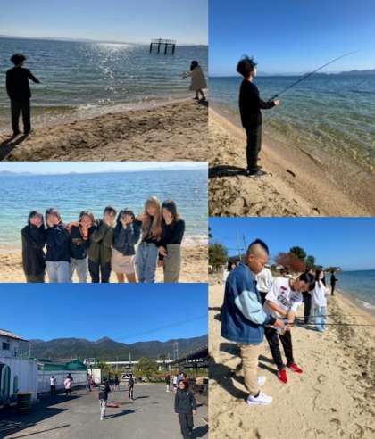 ビーチでは貝殻を拾ったり、釣りを楽しんだりしています。